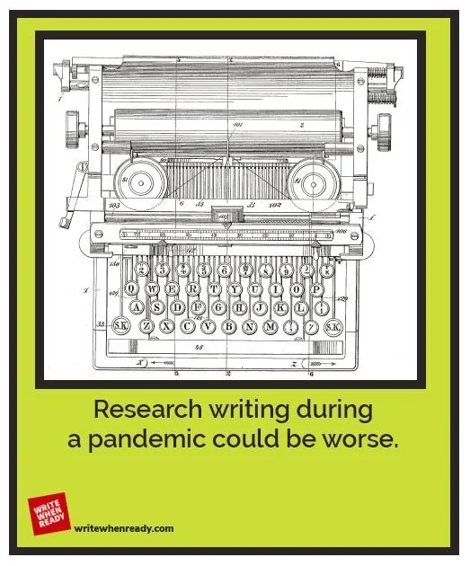 ID: Research writing during a pandemic could be worse. We could be using a manual typewriter. [Image is a patent image of one of Wagner “Type Writing Machine.”]